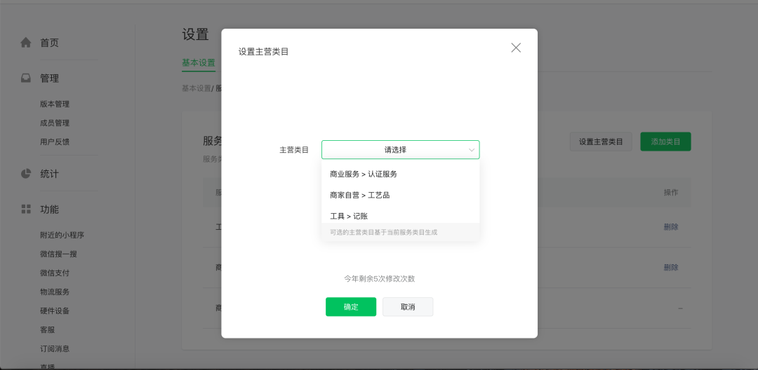 2、主营类目每年有 5 次修改机会,修改即生效,请谨慎修改;
